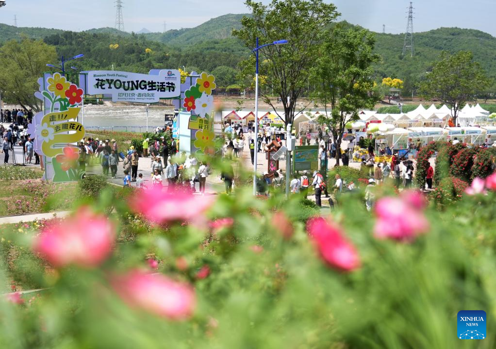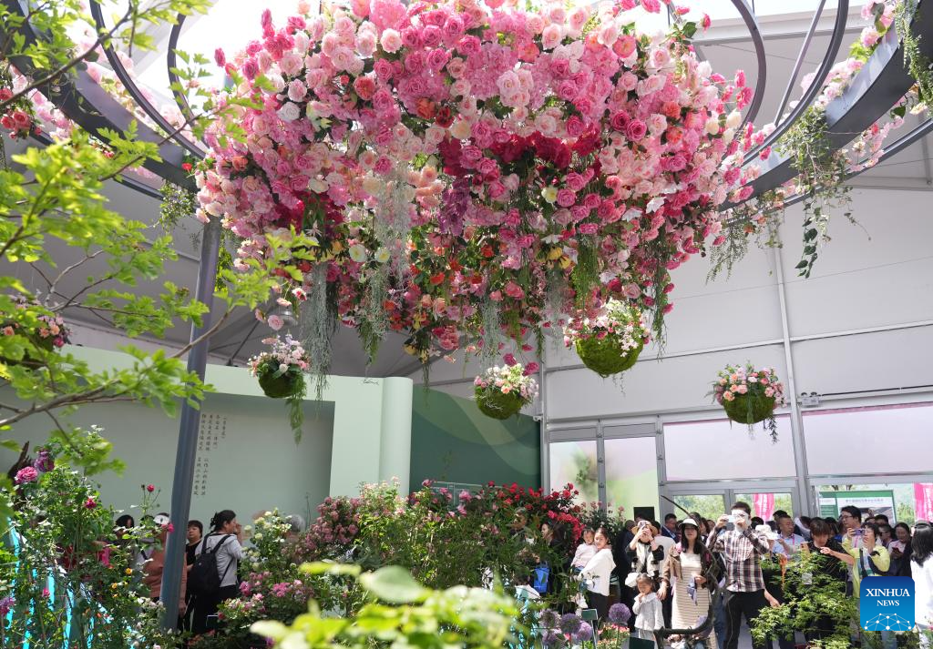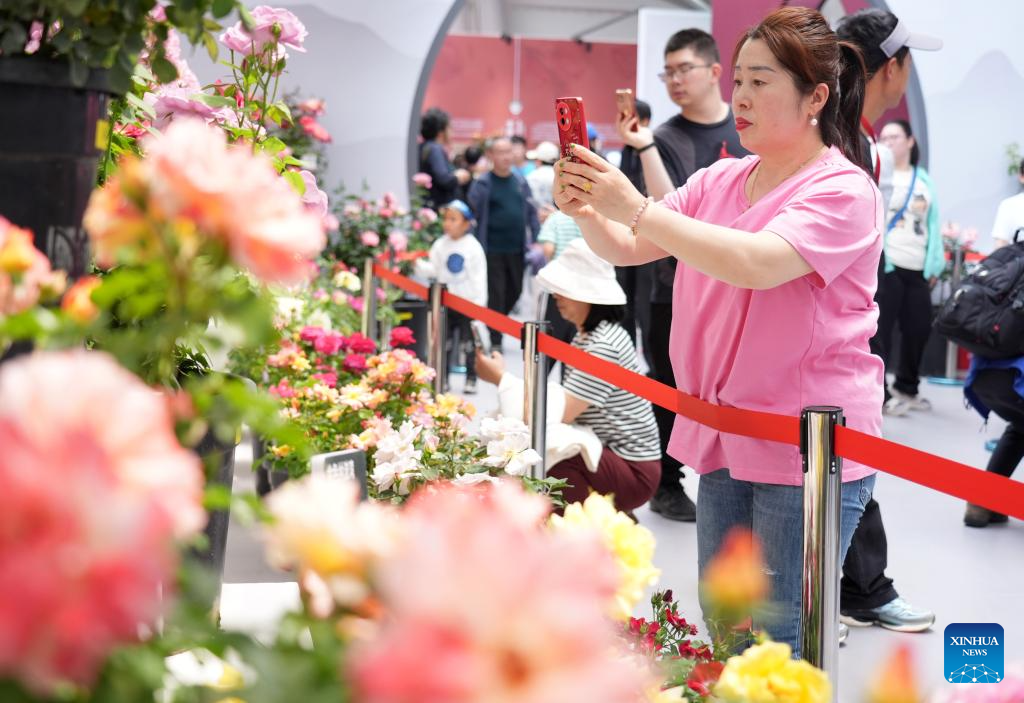 Tourists have fun at the ninth International Symposium on Rose Research and Cultivation in Mentougou District of Beijing, capital of China, May 11, 2025. The ninth edition of the International Symposium on Rose Research and Cultivation kicked off here on Saturday and will last till May 15. This event, featuring over a thousand varieties of Rosa Chinensis, or the Chinese rose, from all over the world, attracted a large number of tourists to come and enjoy the flowers and have fun. (Xinhua/Zhang Chenlin)