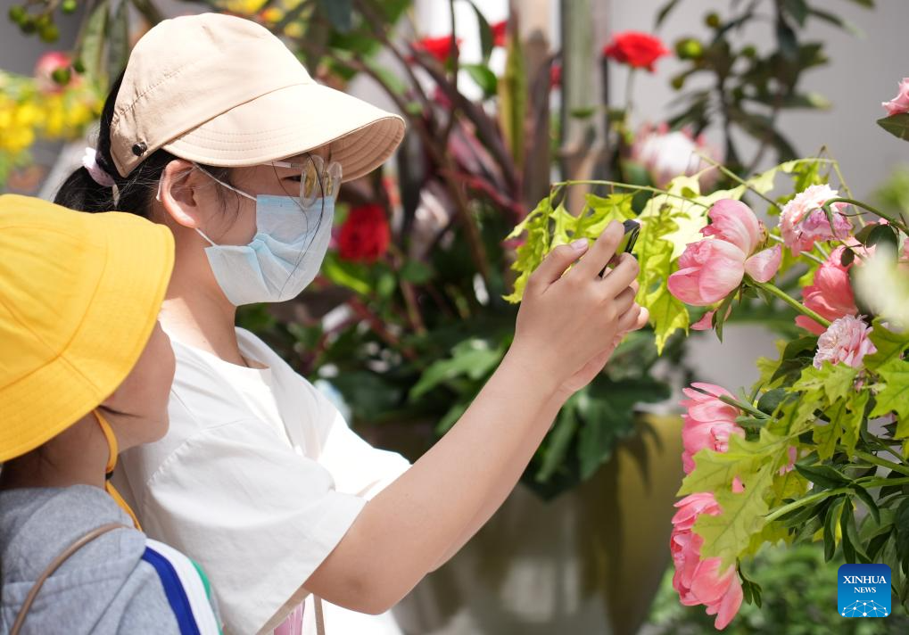 A child takes photos of Chinese roses at the ninth International Symposium on Rose Research and Cultivation in Mentougou District of Beijing, capital of China, May 11, 2025. The ninth edition of the International Symposium on Rose Research and Cultivation kicked off here on Saturday and will last till May 15. This event, featuring over a thousand varieties of Rosa Chinensis, or the Chinese rose, from all over the world, attracted a large number of tourists to come and enjoy the flowers and have fun. (Xinhua/Zhang Chenlin)