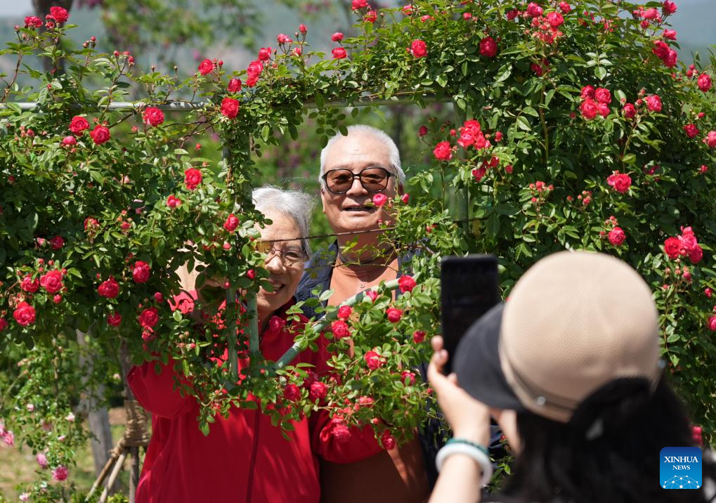 Tourists pose for photos at the ninth International Symposium on Rose Research and Cultivation in Mentougou District of Beijing, capital of China, May 11, 2025. The ninth edition of the International Symposium on Rose Research and Cultivation kicked off here on Saturday and will last till May 15. This event, featuring over a thousand varieties of Rosa Chinensis, or the Chinese rose, from all over the world, attracted a large number of tourists to come and enjoy the flowers and have fun. (Xinhua/Zhang Chenlin)