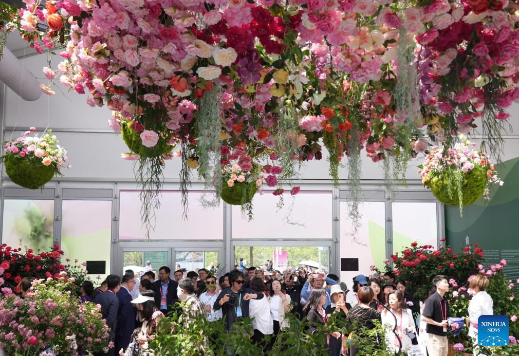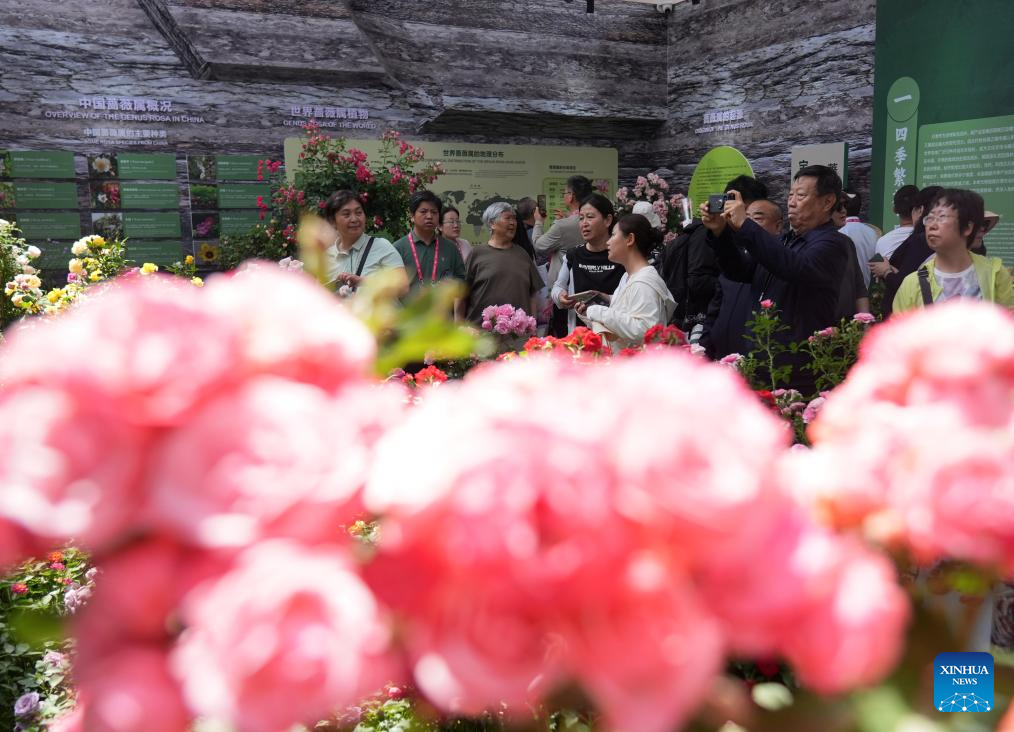 Tourists view Chinese roses at the ninth International Symposium on Rose Research and Cultivation in Mentougou District of Beijing, capital of China, May 11, 2025. The ninth edition of the International Symposium on Rose Research and Cultivation kicked off here on Saturday and will last till May 15. This event, featuring over a thousand varieties of Rosa Chinensis, or the Chinese rose, from all over the world, attracted a large number of tourists to come and enjoy the flowers and have fun. (Xinhua/Zhang Chenlin)