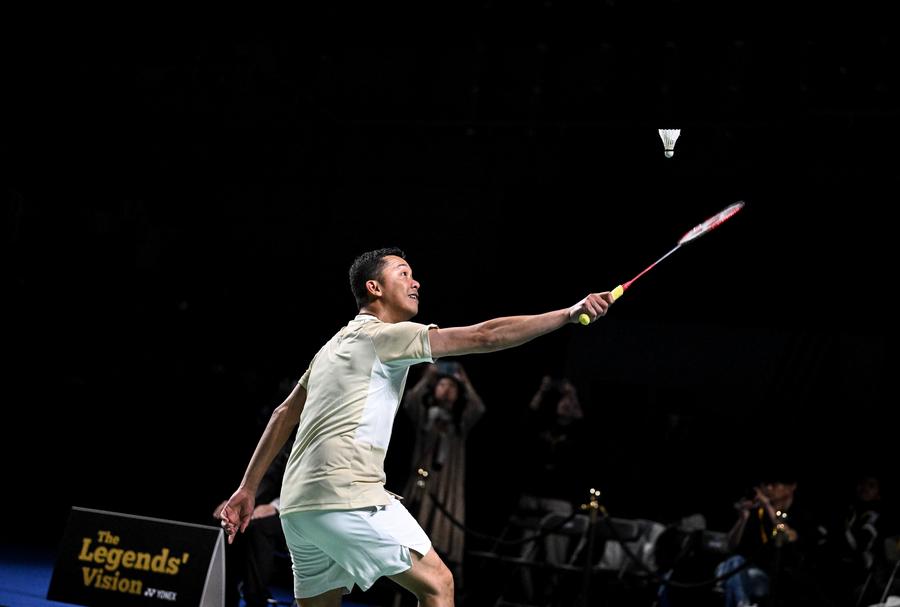 Taufik Hidayat in an exhibition match, May 10, 2025. (Xinhua/Feng Kaihua)