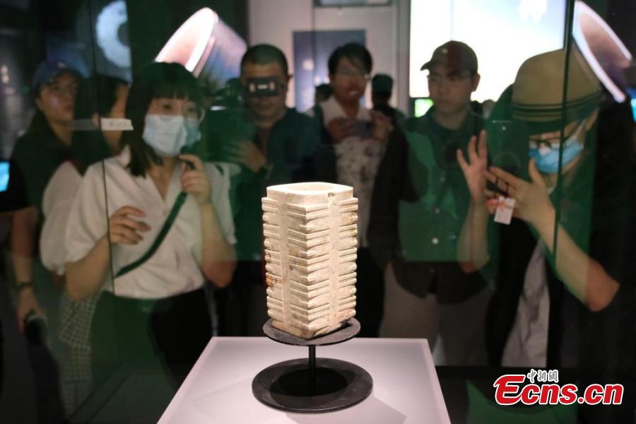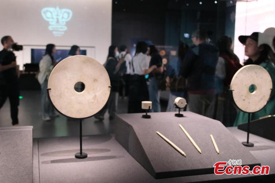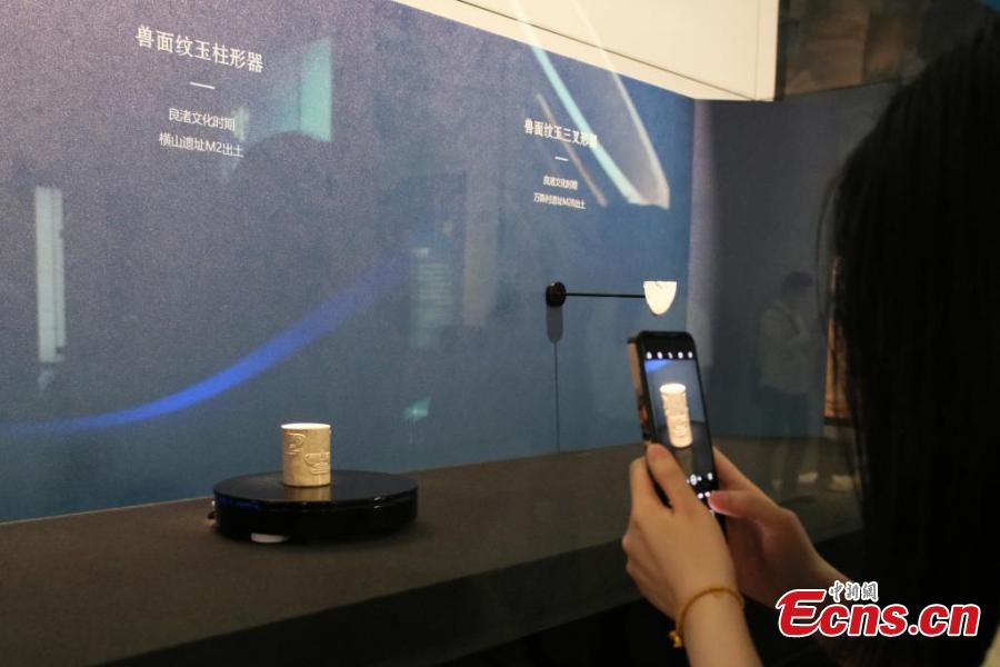 Visitors view cultural relics displayed at the Yujia Mountain Archaeological Museum, Zhejiang's first archaeological museum, in Hangzhou, east China's Zhejiang Province, May 12, 2025. (Photo: China News Service/Cao Dan)