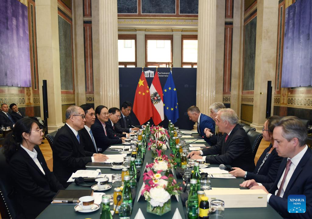 The senior Chinese legislator said the NPC is willing to strengthen exchanges with the National Council of Austria at all levels and in all fields to promote the development of relations between the two countries.