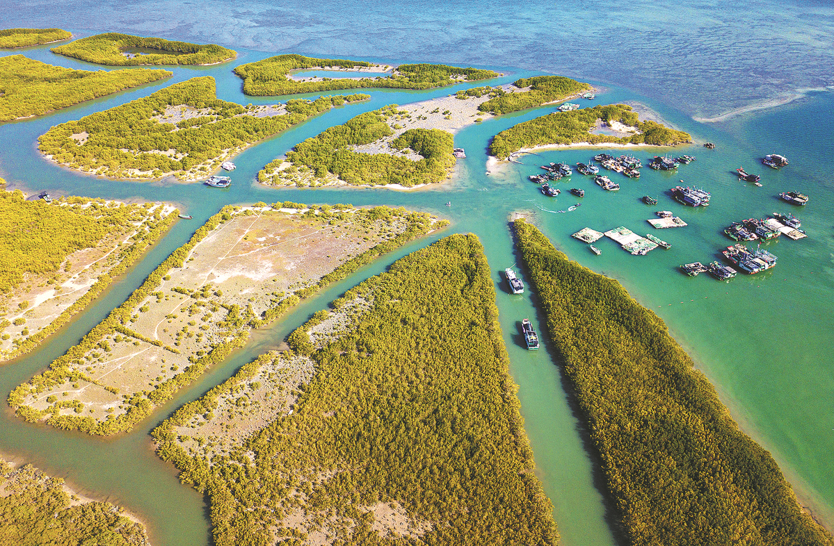 A drone photo taken on Jan 31, 2025, shows the Hainan Lingshui Mangrove National Wetland Park, located in Lingshui Li autonomous county in the southern province of Hainan. (Photo/Xinhua)