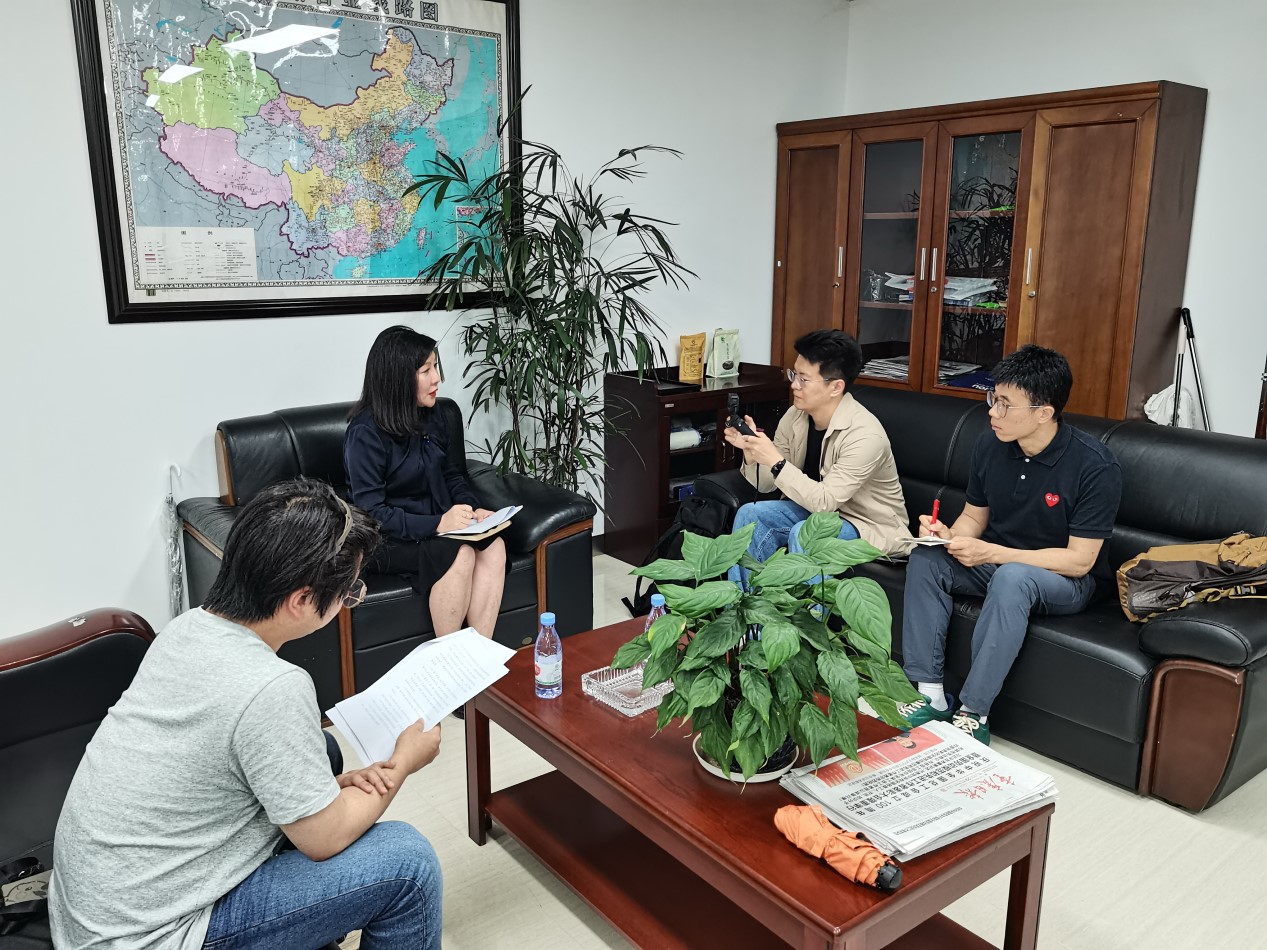 An executive of a company receives an interview on the development of cross-border logistics. (People's Daily Online/Sun Qifan)