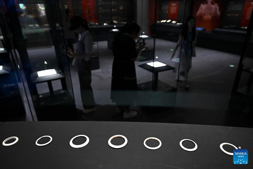 This photo taken on May 16, 2025 shows jade bracelets on display at the Lingjiatan Site Museum in Hanshan County, Ma'anshan City of east China's Anhui Province. (Xinhua/Zhang Duan)
