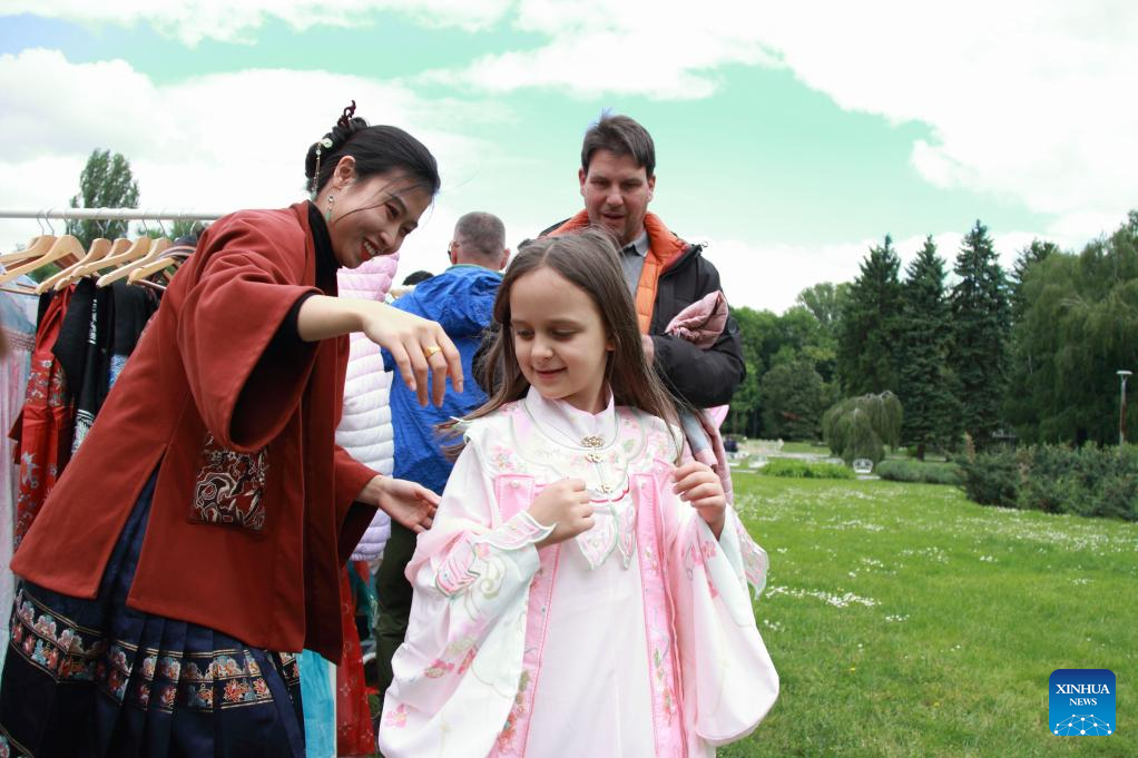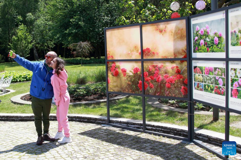 People enjoy the "Peony Festival - a Meeting of Cultures" event in Sofia, Bulgaria, on May 17, 2025. The event took place along the peony garden in Sofia's South Park. The garden was created last autumn with plants donated by China's Heze City, known as China's Peony Capital. (Photo by Marian Draganov/Xinhua)