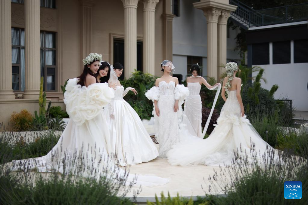 Women in wedding dresses are pictured at a wedding art center in Kunming, southwest China's Yunnan Province, May 20, 2025. (Xinhua)