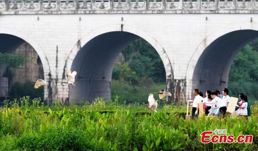 Crested ibises are released into the wild at Muchuan County, southwest China's Sichuan Province, May 22, 2025. (China News Service/An Yuan)