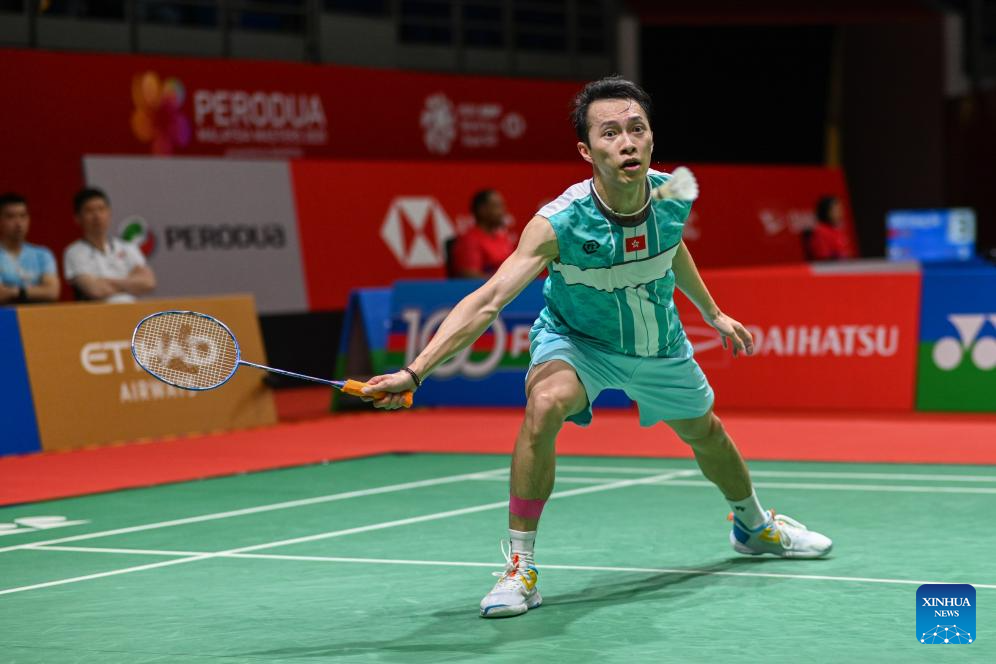 Ng Ka Long Angus of China's Hong Kong hits a return during the men's singles quarterfinal against Li Shifeng of China at 2025 Malaysia Masters badminton tournament in Kuala Lumpur, Malaysia, May 23, 2025. (Photo by Chong Voon Chung/Xinhua)