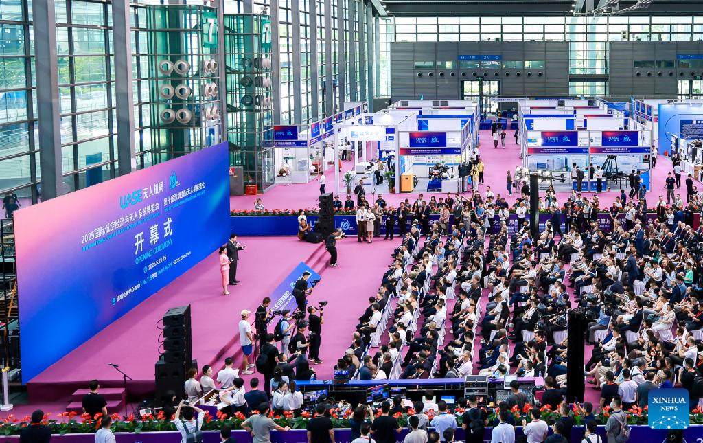 Guests attend the opening ceremony of International Low Altitude Economy and UAS Expo 2025 and the 10th Shenzhen International UAV Expo in Shenzhen, south China's Guangdong Province, May 23, 2025. The 9th Drone World Congress 2025, International Low Altitude Economy and UAS Expo 2025 and the 10th Shenzhen International UAV Expo kicked off on Friday. Over 800 companies with more than 5,000 drone products participated in the expo. (Xinhua)