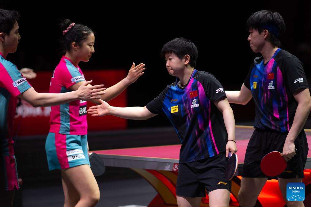 DOHA, May 23 (Xinhua) -- Olympic champions Wang Chuqin and Sun Yingsha defeated South Korea's Lim Jong-hoon and Shin Yu-bin in straight sets to advance into the mixed doubles final at the World Table Tennis Championships on Friday.