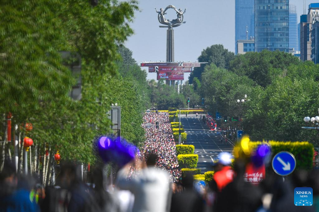 Runners compete during the 2025 Hongqi Changchun Marathon in Changchun, northeast China's Jilin Province, on May 25, 2025. (Xinhua/Zhang Nan)
