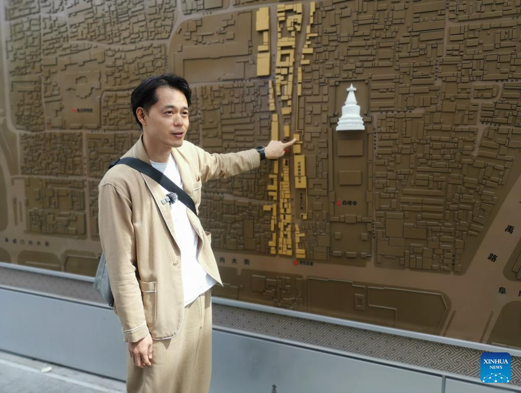 Japanese architect Shuhei Aoyama gives an introduction on a hutong near the centuries-old Miaoying Temple, also known as the White Stupa Temple, in downtown Beijing, capital of China, April 8, 2025. (Xinhua/Wang Xiaopeng)