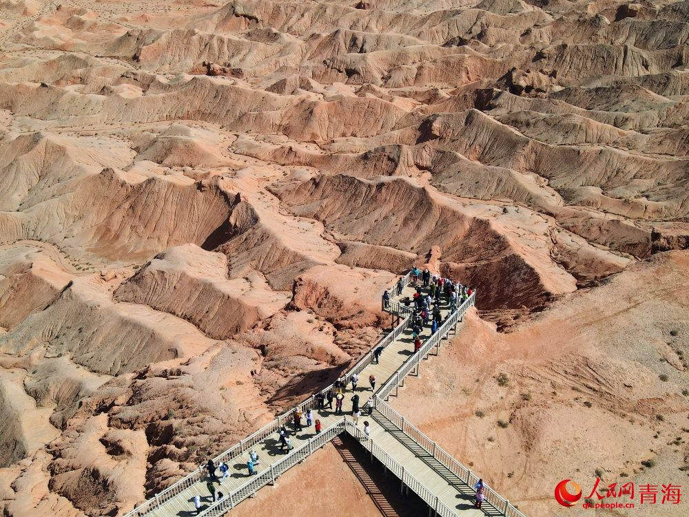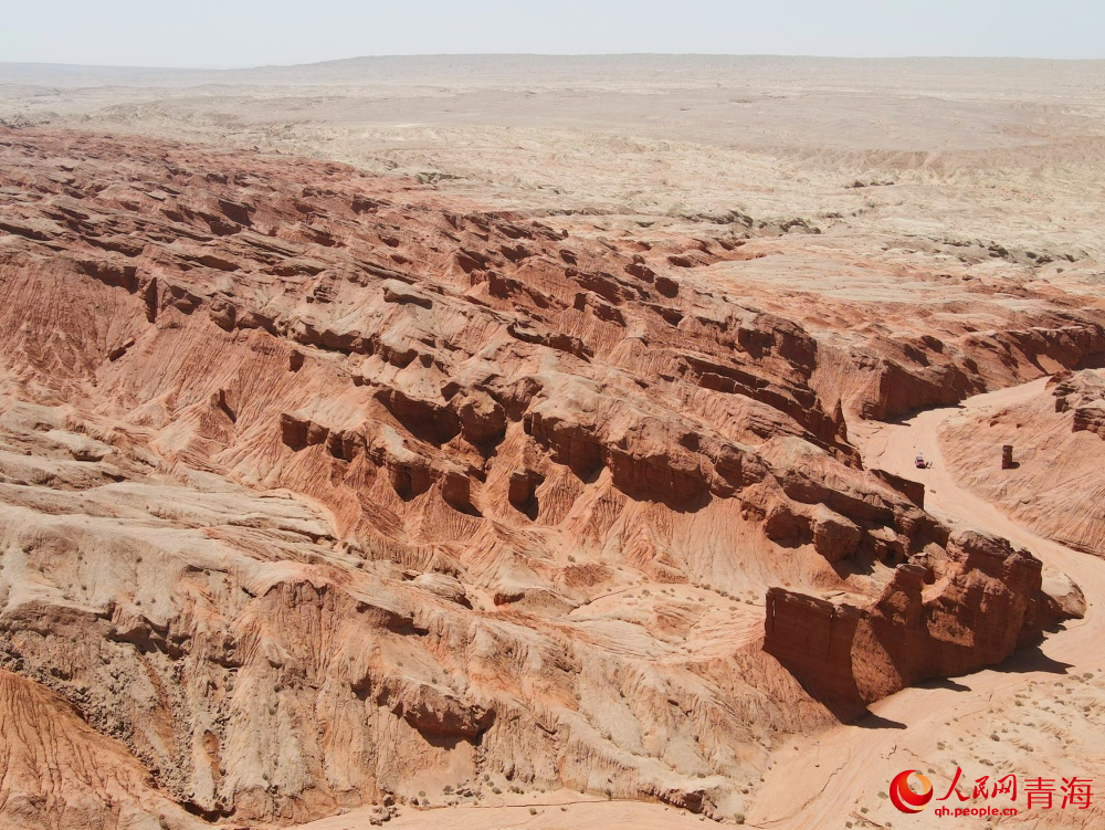 Photo shows the Mars-like red cliff region in Da Qaidam, also known as Dachaidan district, in the Haixi Mongolian and Tibetan Autonomous Prefecture, northwest China's Qinghai Province. (People's Daily Online/Kuang Yu)