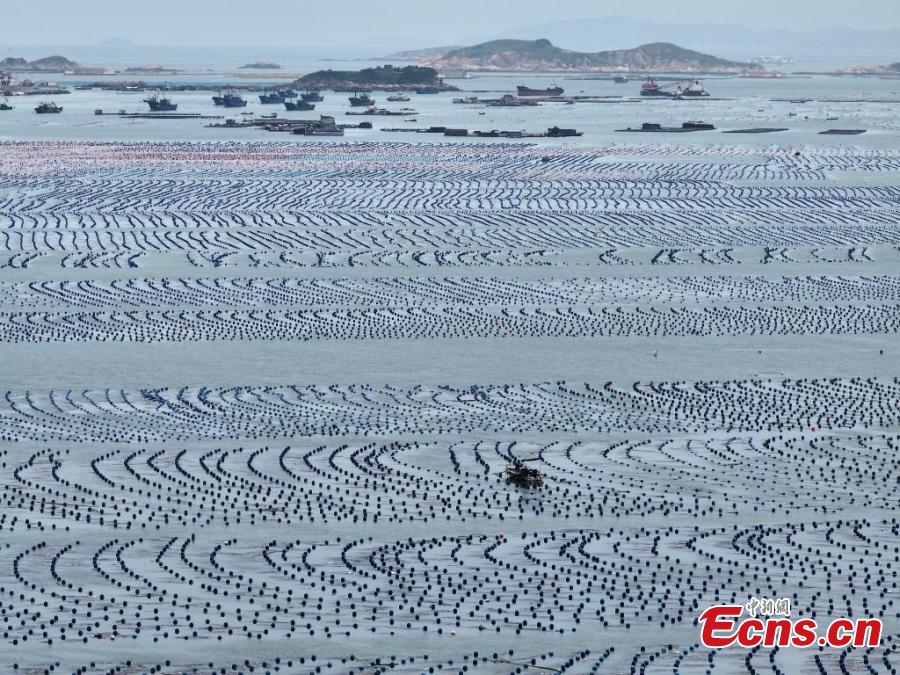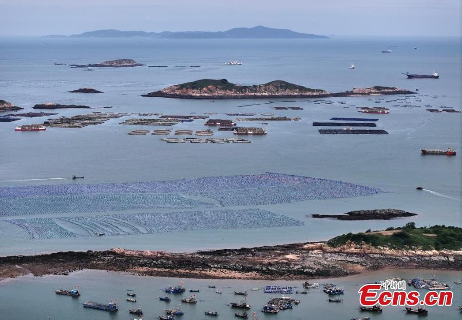 Ocean ranch floats in Dinghai Bay, Lianjiang County, east China's Fujian Province, May 27, 2025. (China News Service/Zhang Bin)