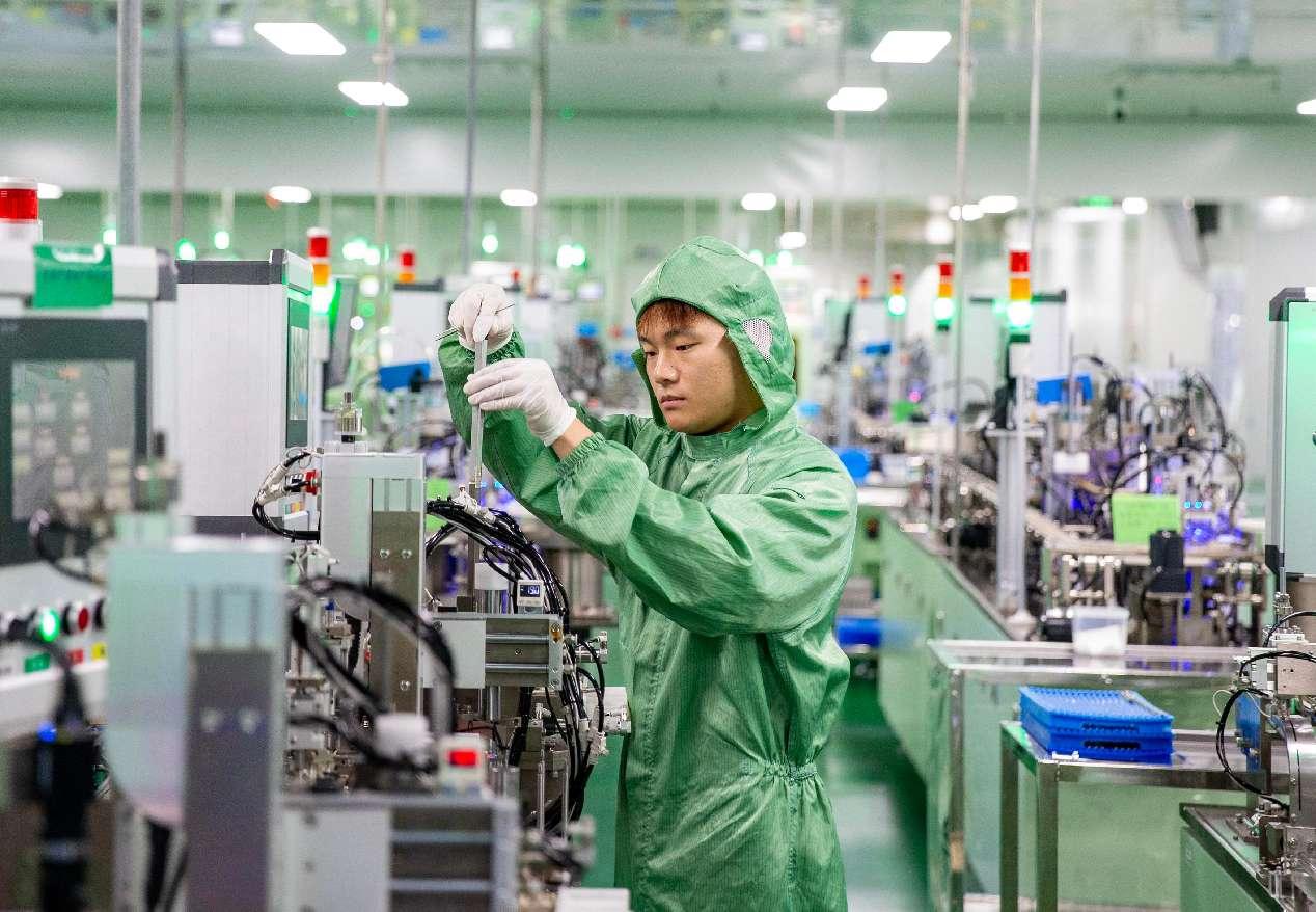 A worker produces micro bearings in a plant of a tech firm in Nantong, east China's Jiangsu province. (Photo by Zhai Huiyong/People's Daily Online)