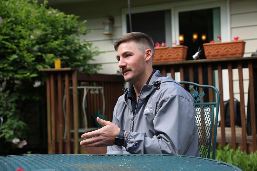 Cale Pellett speaks in an interview with Xinhua in Atlantic, Iowa, the United States, on May 22, 2025. (Xinhua/Liu Yanan)