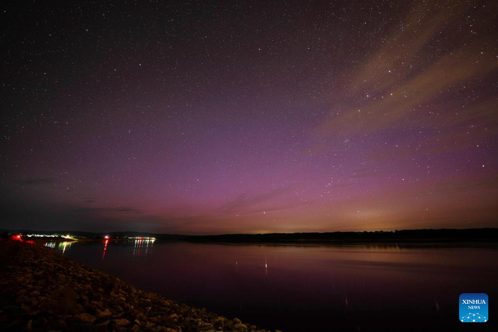 This photo taken on June 2, 2025 shows a view of aurora and starry sky at Songhuajiang River Harbin section in Harbin, northeast China's Heilongjiang Province. (Photo by Li Xin/Xinhua)