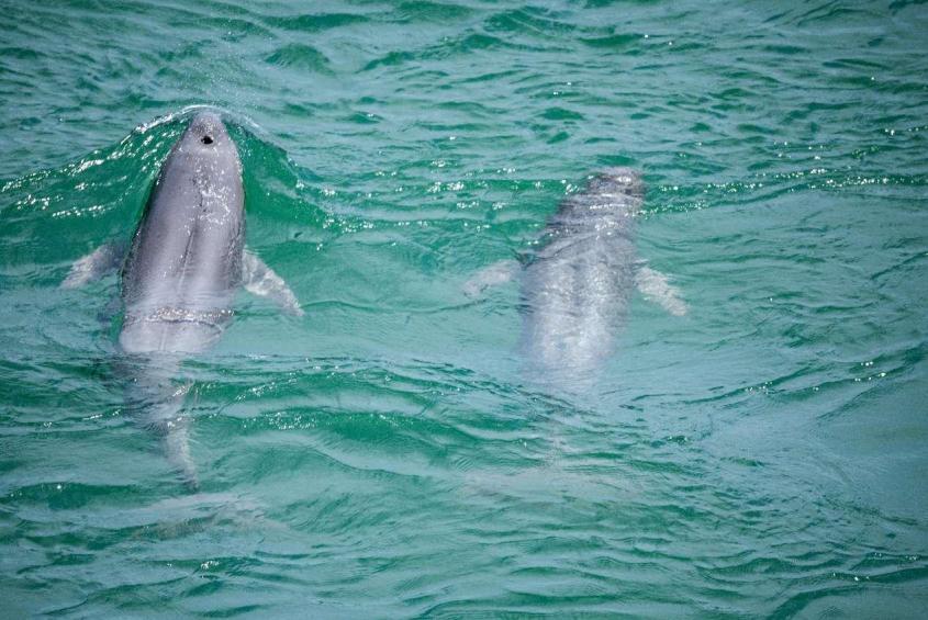 Early in the morning in Jiangtun bay of Yangye township, Ezhou, central China's Hubei Province, several Yangtze finless porpoises frolicked in the river, occasionally poking their heads above the water.