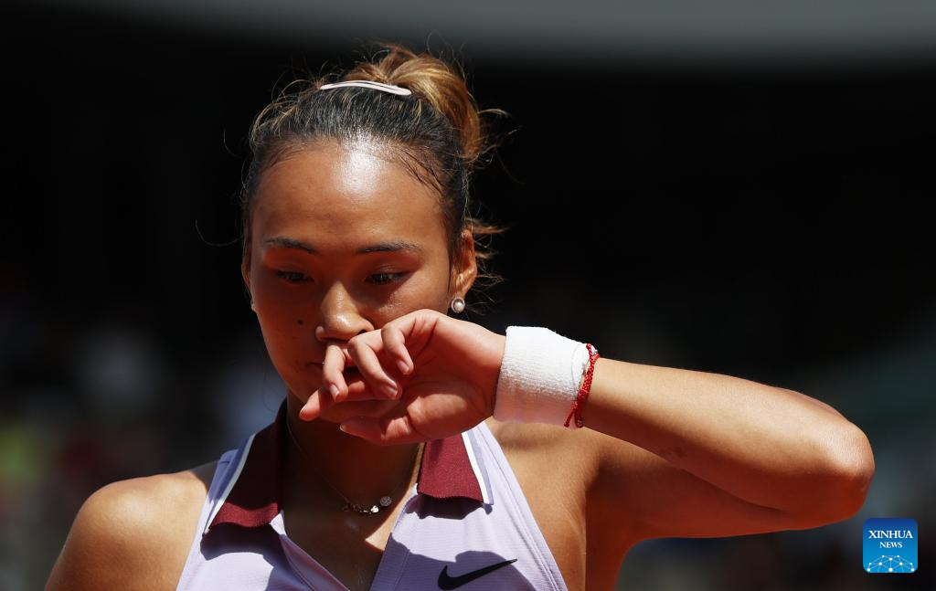 PARIS, June 3 (Xinhua) -- Chinese Zheng Qinwen lost to world No.1 Aryna Sabalenka of Belarus 7-6 (3), 6-3 in the women's singles quarterfinals at the French Open on Tuesday.