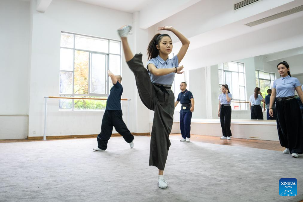 Actresses take basic training at the practice room of the Hunan Kunqu Opera Troupe in Beihu District of Chenzhou City in central China's Hunan Province, June 4, 2025.