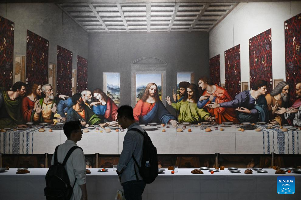 Visitors view the digitally restored version of Leonardo da Vinci's The Last Supper during the exhibition "Harmony through Time and Space: How Leonardo da Vinci Created Concord between His Artistic and Scientific World and the Natural World" at the Natural History Museum of China in Beijing, capital of China, June 5, 2025. The exhibition kicked off here on Thursday and will last until October 19. (Xinhua/Chen Zhonghao)