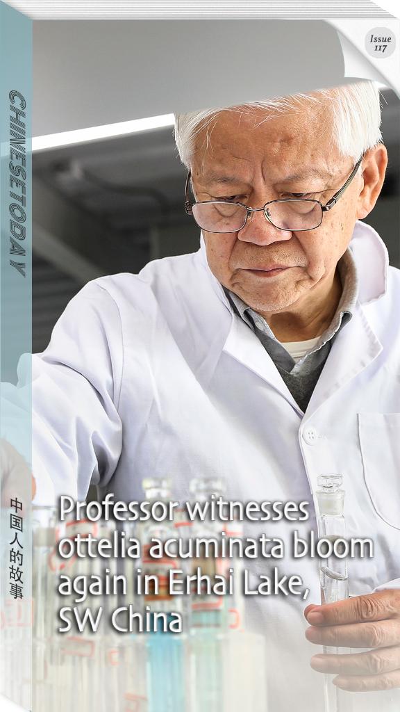 Ottelia acuminata, known as an indicator of water quality, once bloomed in Erhai Lake. Since the 1990s, due to the deterioration of the water quality of the lake, the plant became hard to be found. Thanks to the efforts of Kong's team and local authorities, the water quality of Erhai Lake has gradually improved, and ottelia acuminata flourished again.