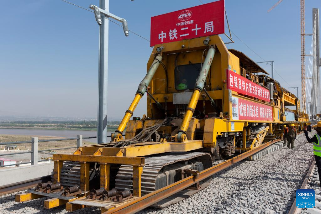 Track-laying phase of Inner Mongolia section of Baotou-Yinchuan high-speed railway project completed