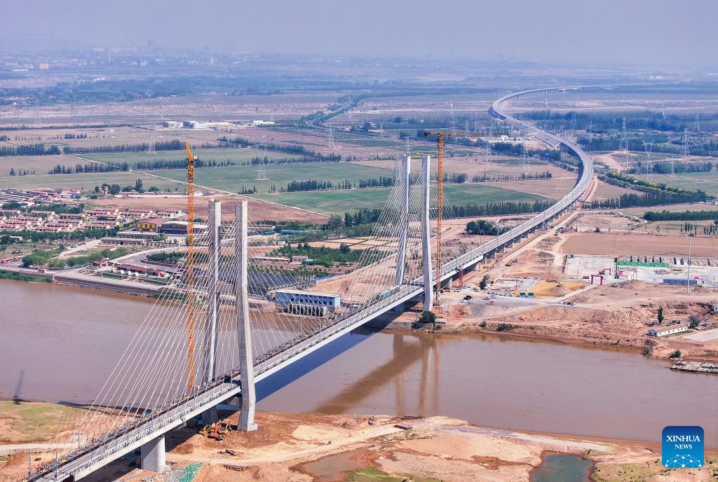 This photo shows the construction site of the Wuhai Yellow River grand bridge in north China's Inner Mongolia Autonomous Region, June 6, 2025.