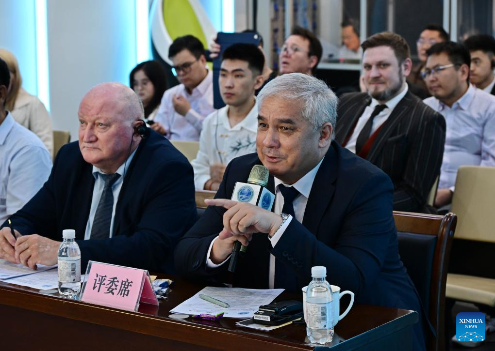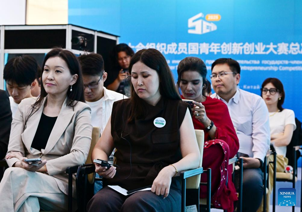 Contestants are pictured during the final of the 4th SCO (Shanghai Cooperation Organization) Member States Youth Innovation and Entrepreneurship Competition in Qingdao, east China's Shandong Province, June 8, 2025. The final was held here on Sunday, with 18 groups and projects from 9 countries attending. (Xinhua/Li Ziheng)