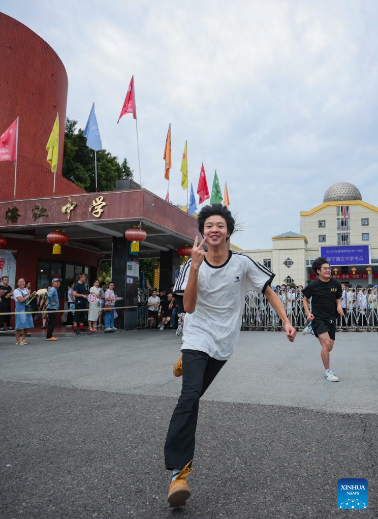 Students walk out a national college entrance examination site in Xinghua City, east China's Jiangsu Province, June 9, 2025. China's national college entrance exam, also known as the gaokao, began on June 7 this year. The exam in some regions has ended on Monday. (Photo by Zhou Shegen/Xinhua)