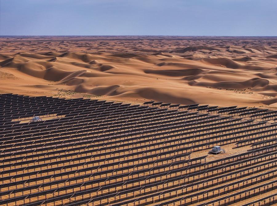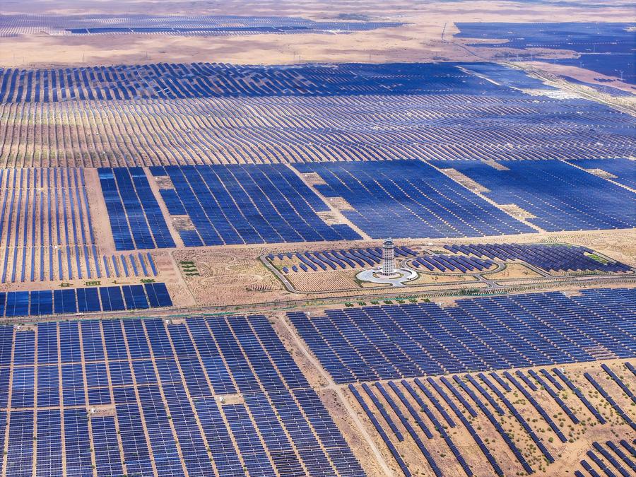 Photovoltaic projects transform sandy terrain into "blue seas" in north China's deserts