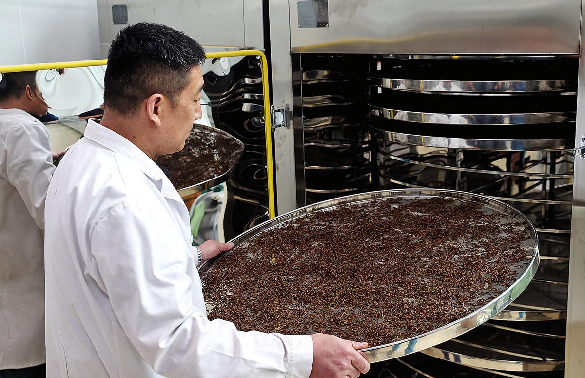 A worker makes tea at a tea science innovation demonstration park in Rizhao on May 23. (Chen Zebing/China Daily)
