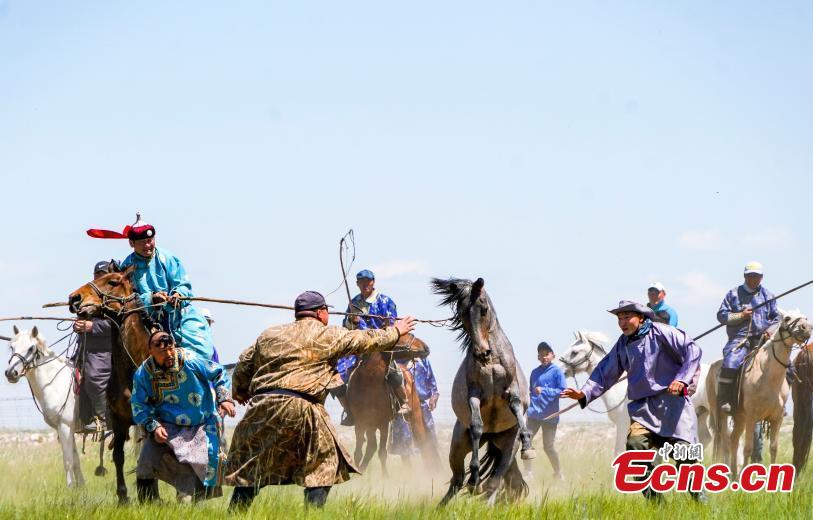 Trainers swing their lassos to catch spirited horses during a horse-taming competition in Xilin Gol League of north China's Inner Mongolia Autonomous Region. (China News Service/Wang Zhiwei)