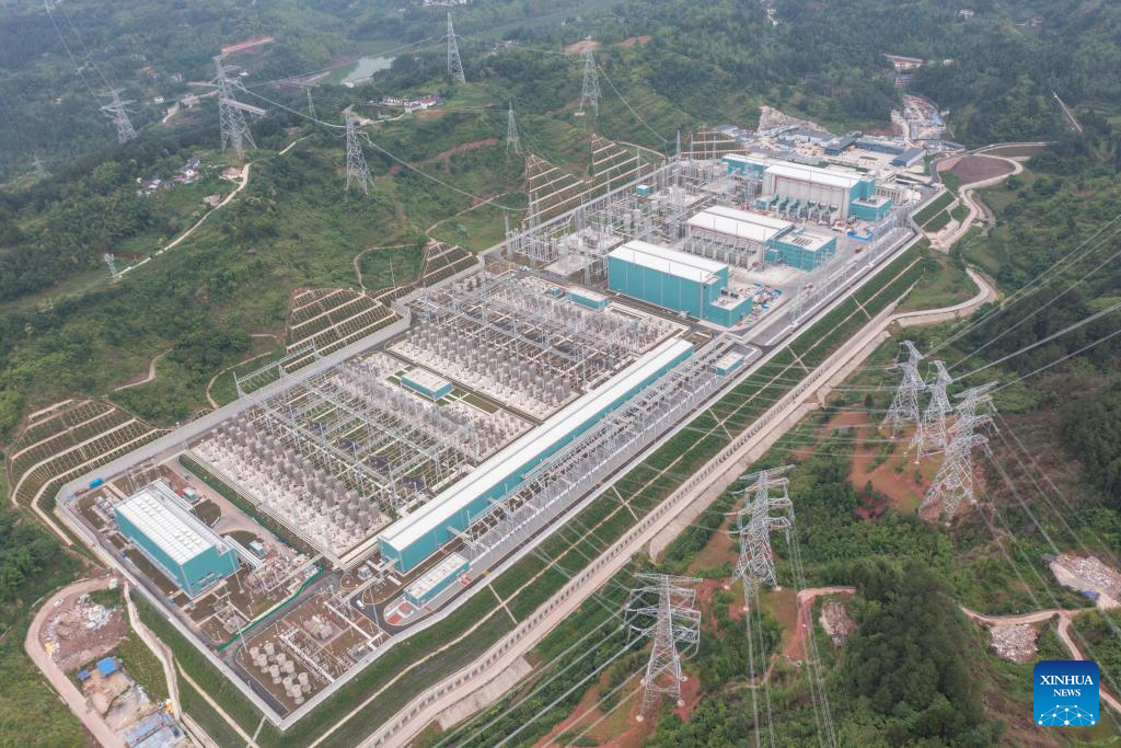 This photo shows the Yubei converter station of the Hami-Chongqing ±800 kV ultra-high voltage direct current transmission project, in southwest China's Chongqing Municipality, June 10, 2025. The State Grid Corporation of China on Tuesday announced the operation of the ±800 kV ultra-high voltage direct current transmission project linking eastern Xinjiang's Hami with southwest China's Chongqing Municipality.