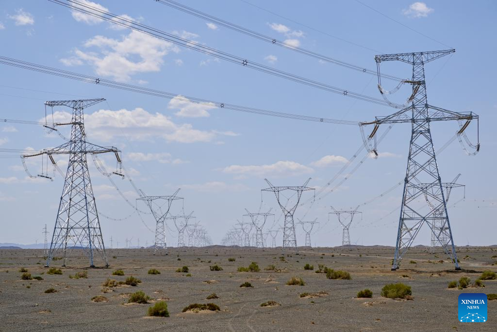 This marks China's third major project to transmit electricity from energy-rich Xinjiang Uygur Autonomous Region to other parts of the country. (Photo by Zhang Guipeng/Xinhua)