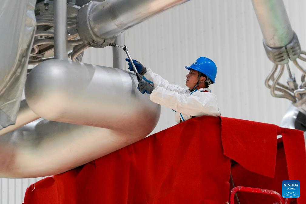 Workers assemble a tower at the site of the Hami-Chongqing ±800 kV ultra-high voltage direct current transmission project, in Hami, northwest China's Xinjiang Uygur Autonomous Region, July 12, 2024. The State Grid Corporation of China on Tuesday announced the operation of the ±800 kV ultra-high voltage direct current transmission project linking eastern Xinjiang's Hami with southwest China's Chongqing Municipality.