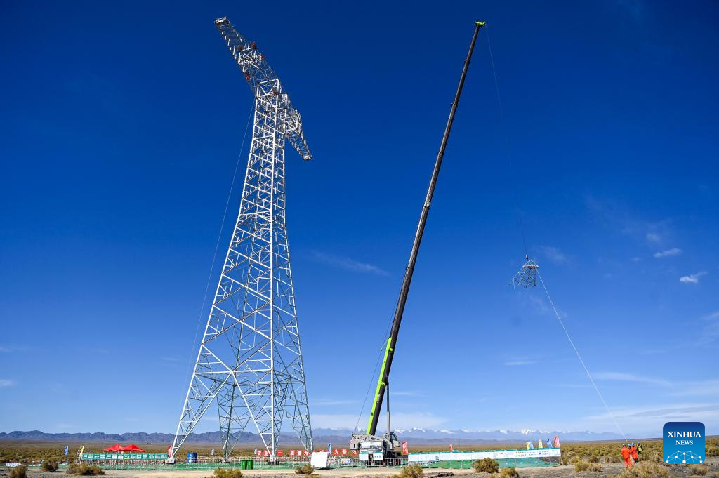 This marks China's third major project to transmit electricity from energy-rich Xinjiang Uygur Autonomous Region to other parts of the country. (Photo by Zhang Lingjun/Xinhua)