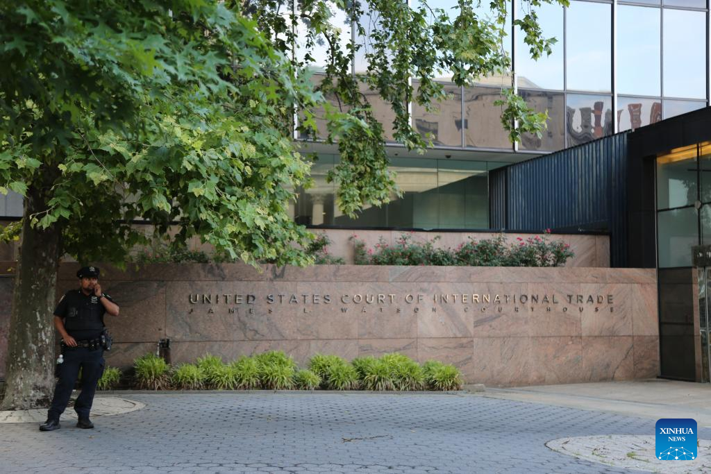 A pedestrian walks past the U.S. Court of International Trade in New York, the United States, June 10, 2025. (Xinhua/Liu Yanan)
