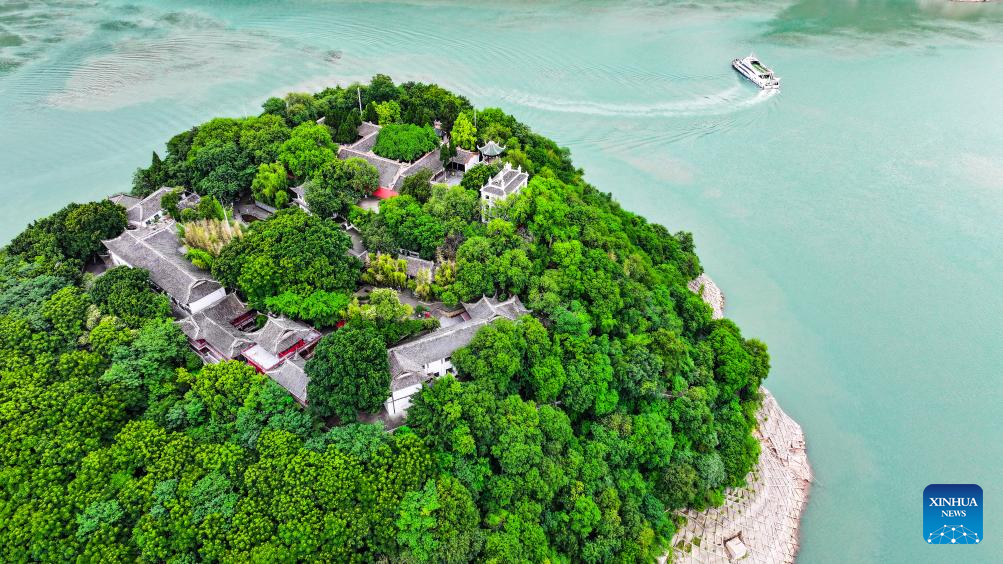 An aerial drone photo shows a view at the ancient town of Baidi in Fengjie County, southwest China's Chongqing Municipality, June 9, 2025. In recent years, Wushan, Fengjie, and other areas in the Three Gorges Reservoir region in Chongqing have adhered to the principle of green development. While consolidating the ecological strength in the upper reaches of the Yangtze River, local authorities have fully leveraged the unique terrain, magnificent landscapes, and rich historical and cultural heritage to promote the development of cultural tourism, effectively boosting local economic and social development. (Xinhua/Wang Quanchao)