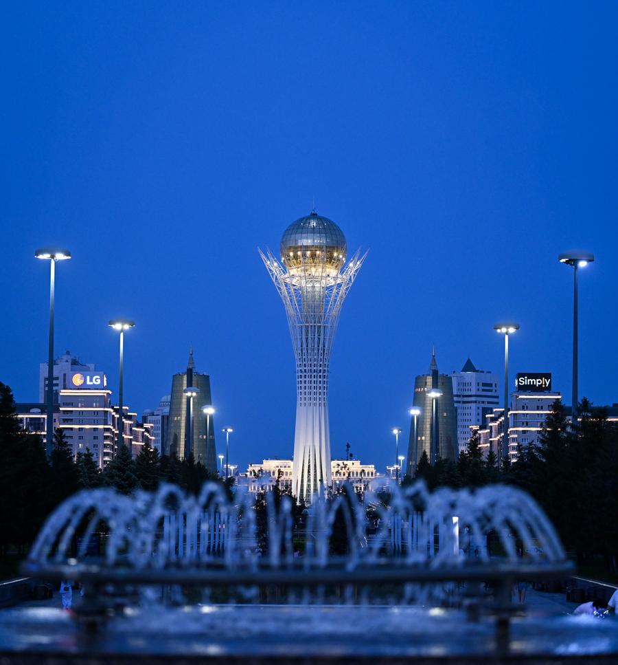 This photo taken on June 11, 2025 shows the Baiterek Tower in Astana, Kazakhstan. (Xinhua/Li Renzi)