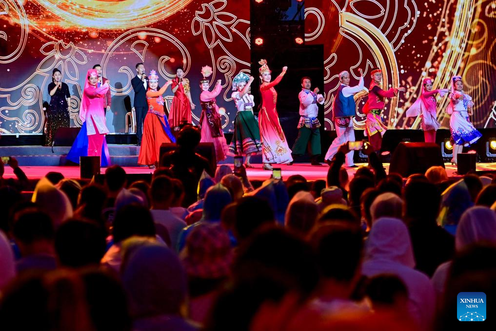 A performance is staged at a park in Huocheng County, northwest China's Xinjiang Uygur Autonomous Region, June 14, 2025. Vast fields of lavender in Huocheng County entered full bloom in June, transforming the landscape into a sea of purple.