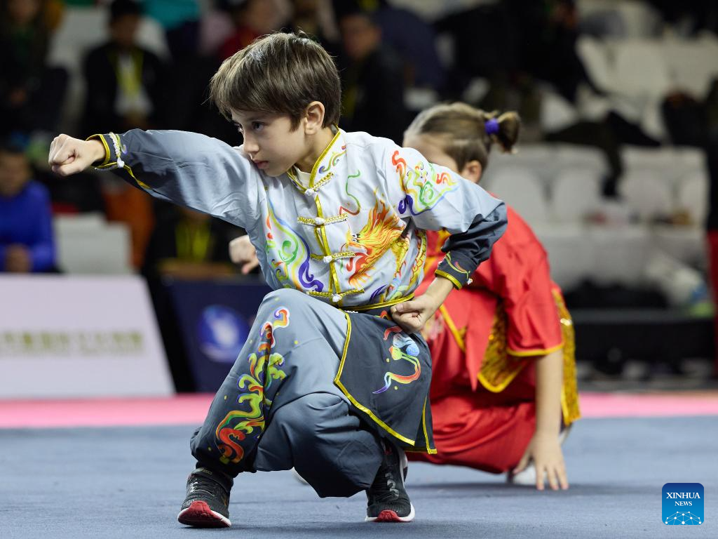 Young athletes perform during the National Wushu Championships of Argentina in Buenos Aires, Argentina, on June 15, 2025. (Xinhua/Meng Dingbo)