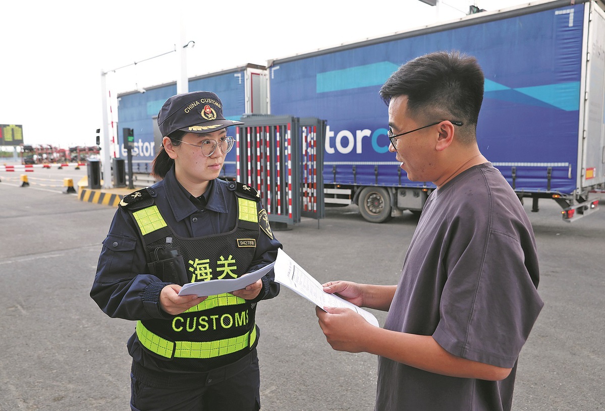 Li Suting, an administrator at Horgos Customs, said with the growing number of domestically made vehicles being exported, a special lane for commercial vehicles has been running at the customs clearance compound since Sept 2 last year.