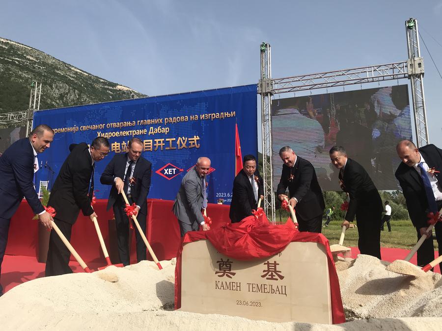 This photo taken with a mobile phone shows the groundbreaking ceremony for the Dabar Hydropower Plant in the entity Republika Srpska (RS) of Bosnia and Herzegovina, June 23, 2023. (Xinhua/Zhang Xiuzhi)
