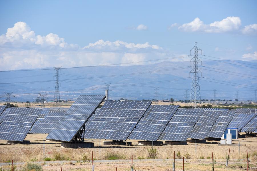 Photo taken on Aug. 30, 2021 shows a solar panel park in Almaraz, Spain. (Photo by Gustavo Valiente/Xinhua)