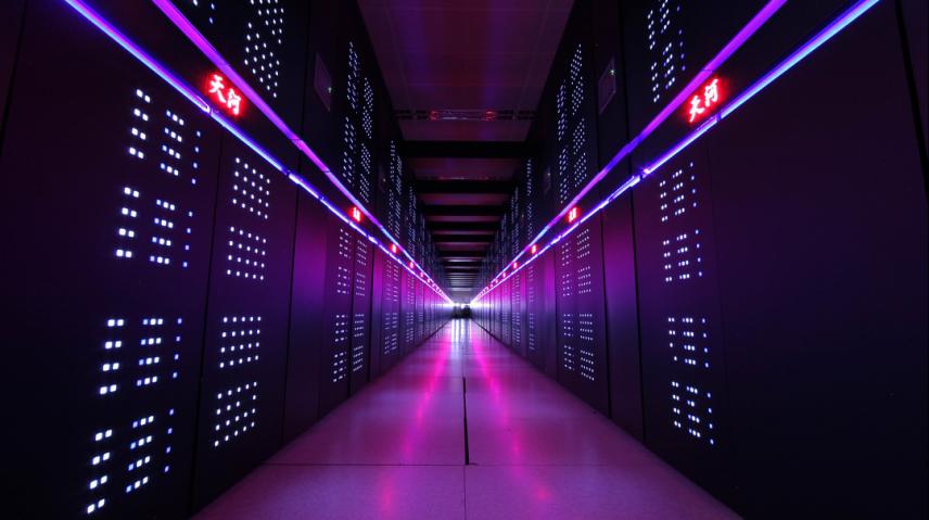 Photo shows the Tianhe-2 supercomputer. (Photo from the official account of the Guangzhou Municipal Science and Technology Bureau on WeChat)