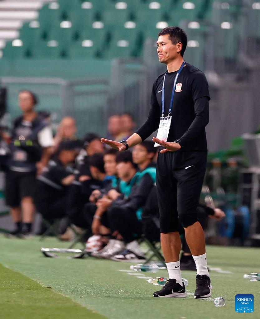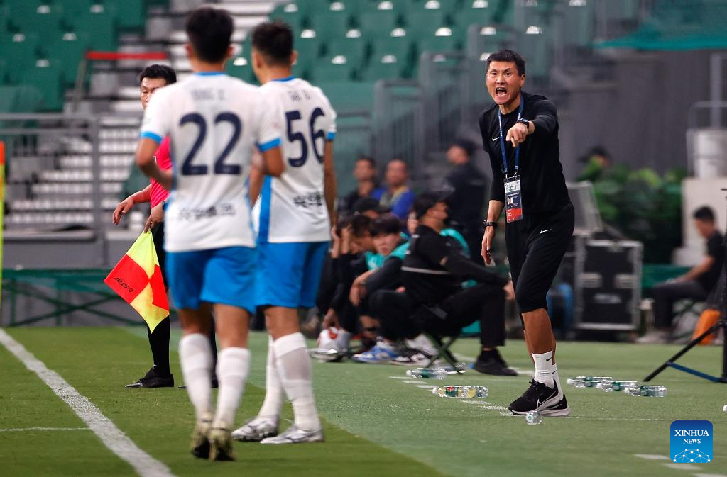 Shao Jiayi, head coach of Qingdao West Coast instructs during the 6th round match between Beijing Guoan and Qingdao West Coast at the 2025 season Chinese Football Super League (CSL) in Beijing, capital of China, June 17, 2025. (Xinhua/Wang Lili)