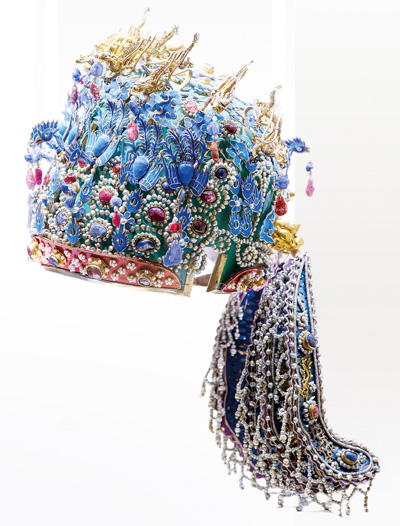 A Kunqu opera performer wears a headdress made with kingfisher feather art. (Photo courtesy of Wang Shenglin)